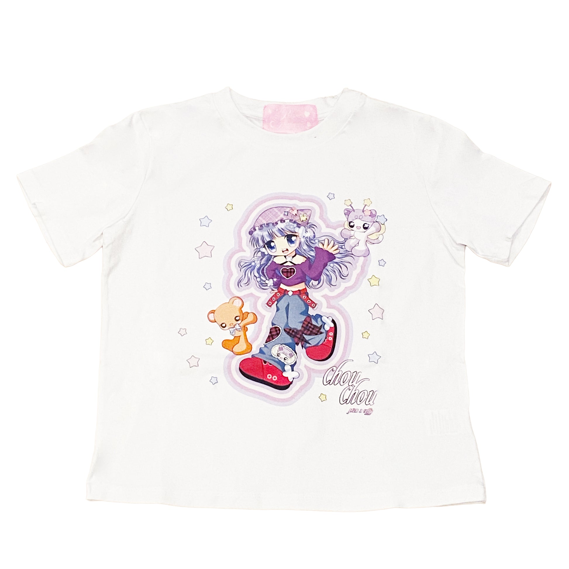 Slim Fit T-Shirt White - PRISM x Taffy.Eye - Crop T-Shirt - Chou Chou (Chibi Style)