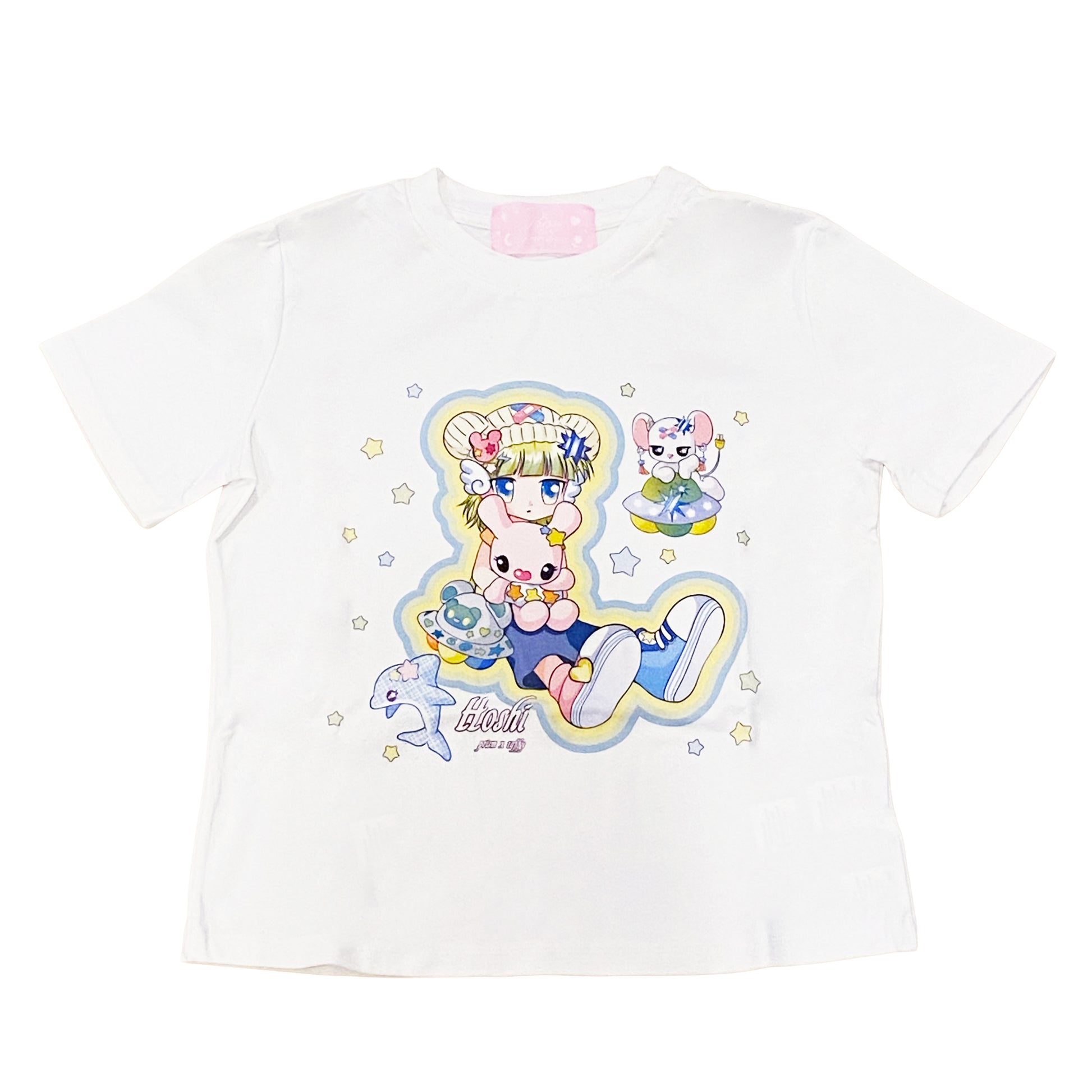 Slim Fit T-Shirt White - PRISM x Taffy.Eye - Crop T-Shirt - Hoshi (Chibi Style)
