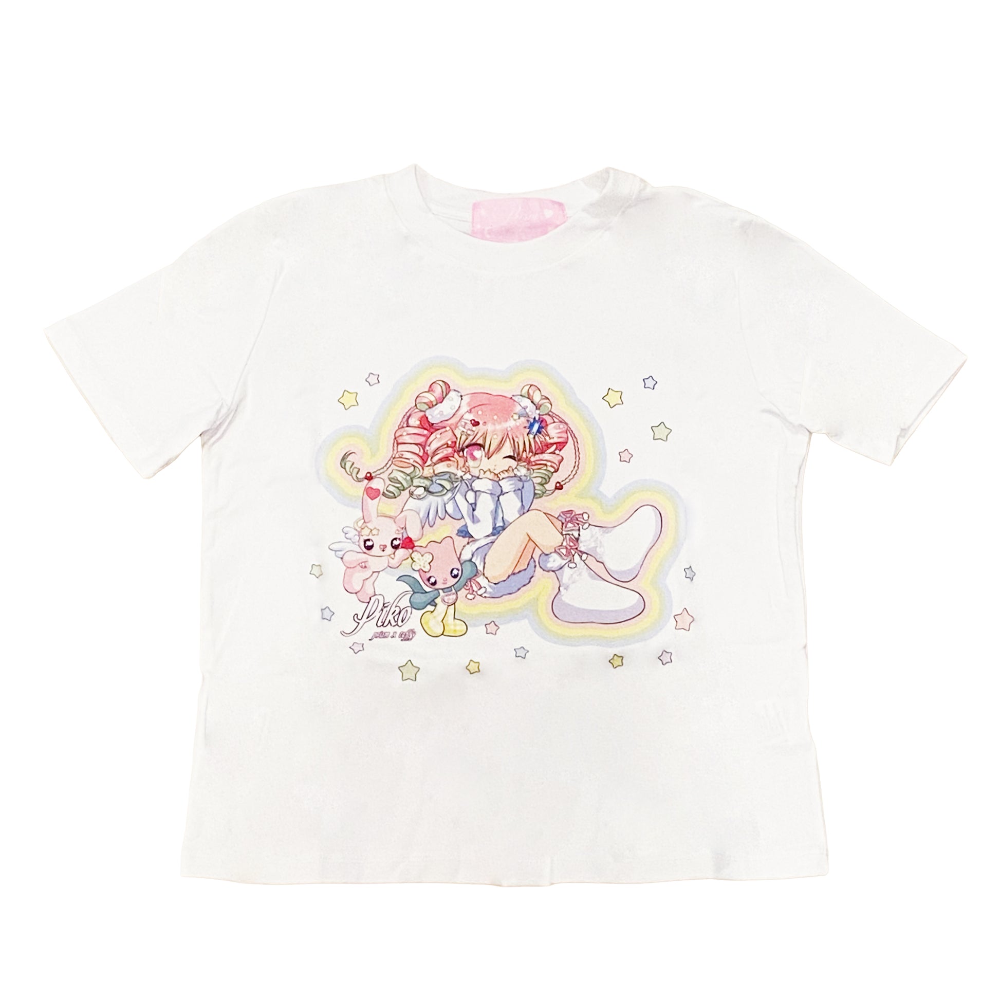 Slim Fit T-Shirt White - PRISM x Taffy.Eye - Crop T-Shirt - Piko (Chibi Style)